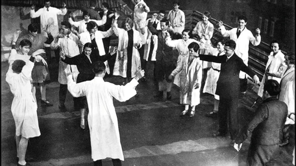 el espíritu del vorkurs trascendía las propias clases e influyó en el día a día de la escuela. maestros y aprendices, en especial los más populares y carismáticos, como itten, kandinsky o klee, convivían intensamente en un mismo espacio de creación e intercambio de ideas. la vida cotidiana durante el periodo de weimar estuvo plagada de eventos culturales, desde poesía hasta espectáculos de luces, pasando por actividades lúdicas como la práctica de yoga o el nudismo e incluso la agricultura: eran los propios estudiantes los que cultivaban y cocinaban su propia comida, siempre vegetariana bajo las atentas indicaciones de itten, guía espiritual de la escuela. y, como siempre, lo colectivo como motivación detrás del espiritualismo purificador del mazdaznan, cuyos procedimientos para limpiar el organismo de toda impureza inspiraron cuadros como mazdaznan-kuren (1922) de paul citroen, en el que se nos muestra la curiosa y capital importancia del tránsito gastrointestinal en esta religión zoroástrica.